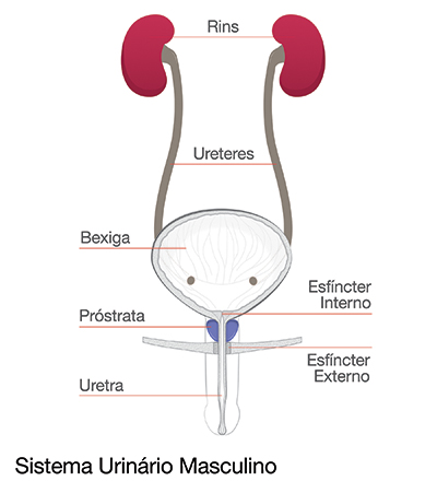 Os esfíncteres são dois músculos com forma de anel (chamados de esfíncteres interno e externo) que rodeiam a uretra. O esfíncter externo é o que é contraído voluntariamente para controlar quando urinar.