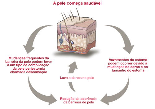 A área de pele em torno do estoma é denominada pele periestomia. Essa pequena área de pele pode ter um grande impacto na sua saúde e conforto gerais. Infelizmente, a maioria das pessoas com estomas apresenta problemas na pele periestomia em algum momento da vida. Alguns estudos mostram que até 75% das pessoas com uma estomia apresentam alguma CPP (Complicações da Pele Periestomia). As CPPs têm muitos impactos negativos e todos eles podem causar problemas significativos, tais como: