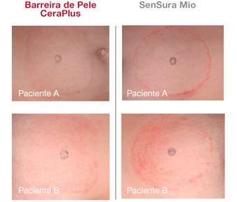 A barreira de pele CeraPlus é significativamente menos prejudicial à pele em comparação com a barreira de pele SenSura Mio.1